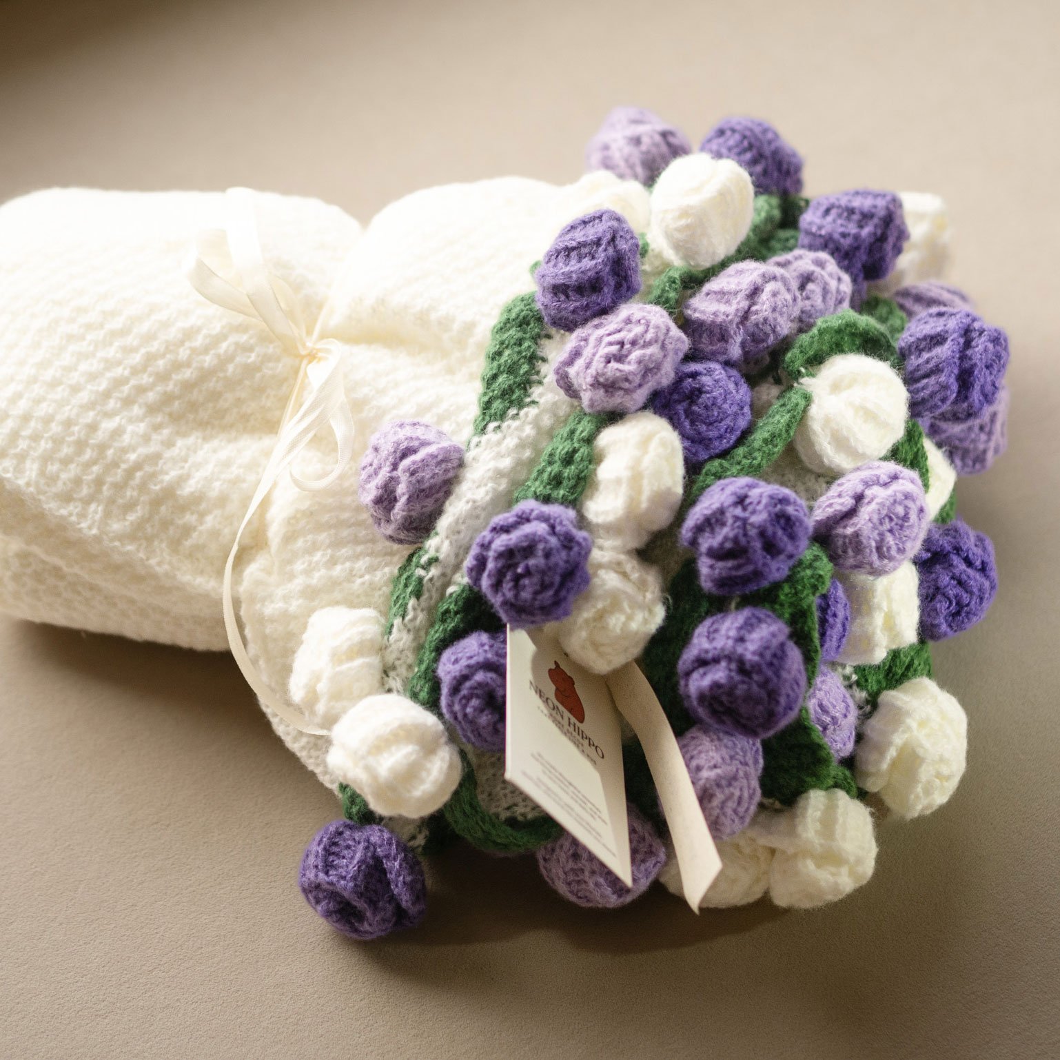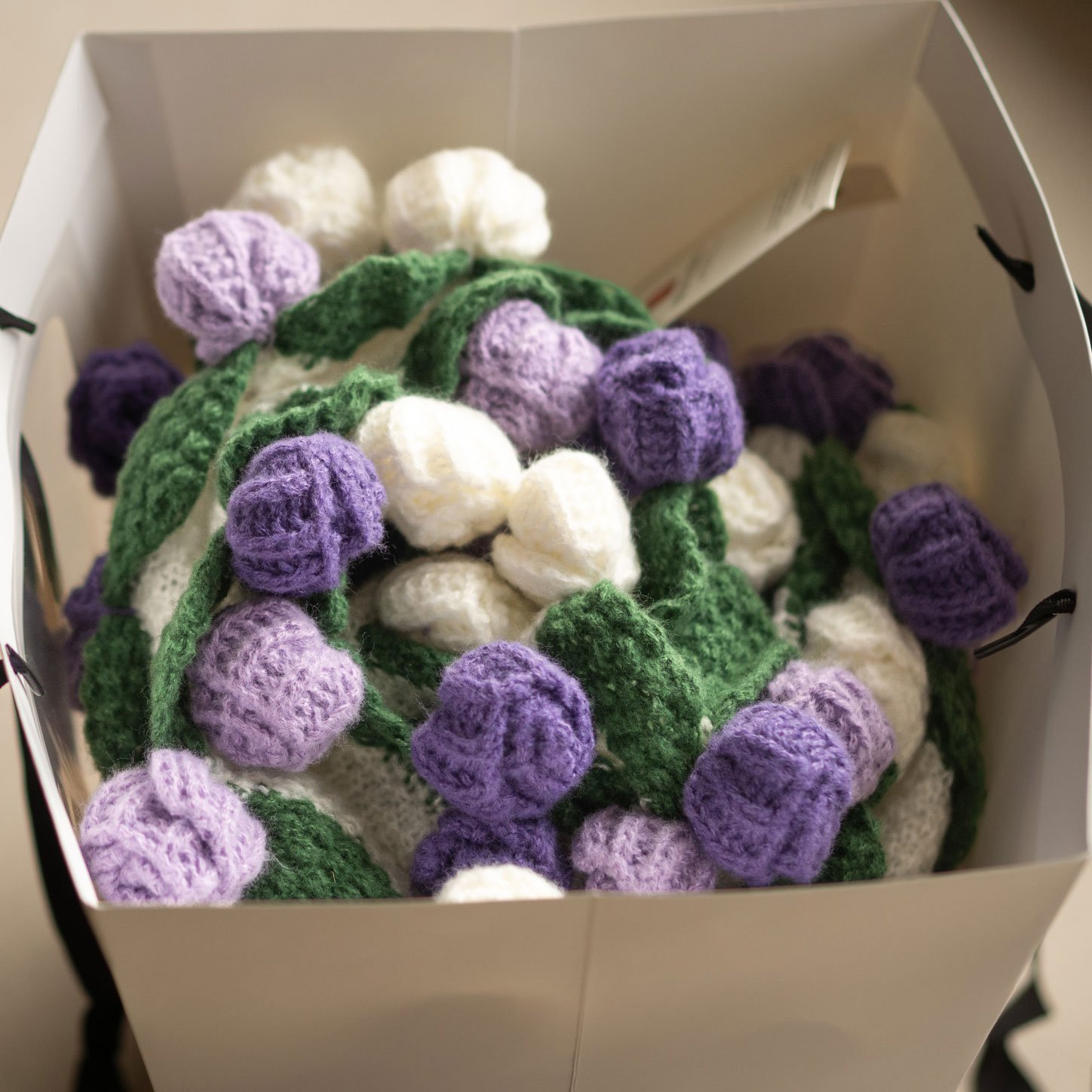 Elegant rose bouquet design with purple and white detailing